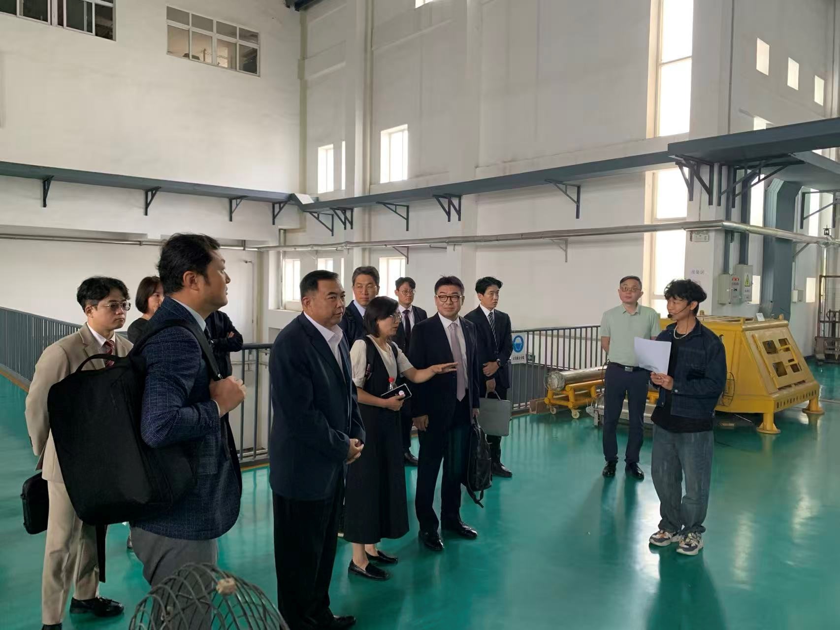 簽約儀式后,金晉副所長一行受邀參觀了海洋動力環(huán)境實(shí)驗(yàn)室。試驗(yàn)場中心技術(shù)人員介紹了室內(nèi)波浪、潮流模擬系統(tǒng)等核心試驗(yàn)設(shè)施的技術(shù)參數(shù)與運(yùn)行機(jī)制,現(xiàn)場演示了波浪能裝備模型水動力性能測試過程。金晉副所長對實(shí)驗(yàn)室在海洋動力環(huán)境模擬、裝備性能驗(yàn)證等方面的技術(shù)能力給予高度評價(jià),認(rèn)為實(shí)驗(yàn)室的先進(jìn)設(shè)施為雙方后續(xù)聯(lián)合開展海洋能裝備測試、關(guān)鍵技術(shù)攻關(guān)提供了重要硬件支撐,期待未來能依托實(shí)驗(yàn)室開展更多務(wù)實(shí)合作。
