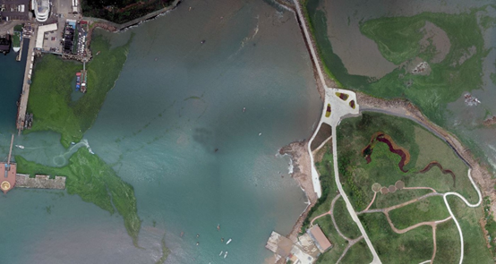 技術中心在前期充分調研了滸苔監測的業務需求及業務流程,了解業務現狀及監測手段,溝通了當前業務中存在的不足。技術中心充分發揮多年積累的海洋無人機監視監測優勢,本次任務中技術人員利用3架小型旋翼無人機,搭載可見光相機和多光譜相機,獲取了滸苔分布較多的石老人海水浴場、小麥島海洋站近岸海域的高分辨率遙感監測信息,共累計飛行10架次,監測面積約5平方公里。