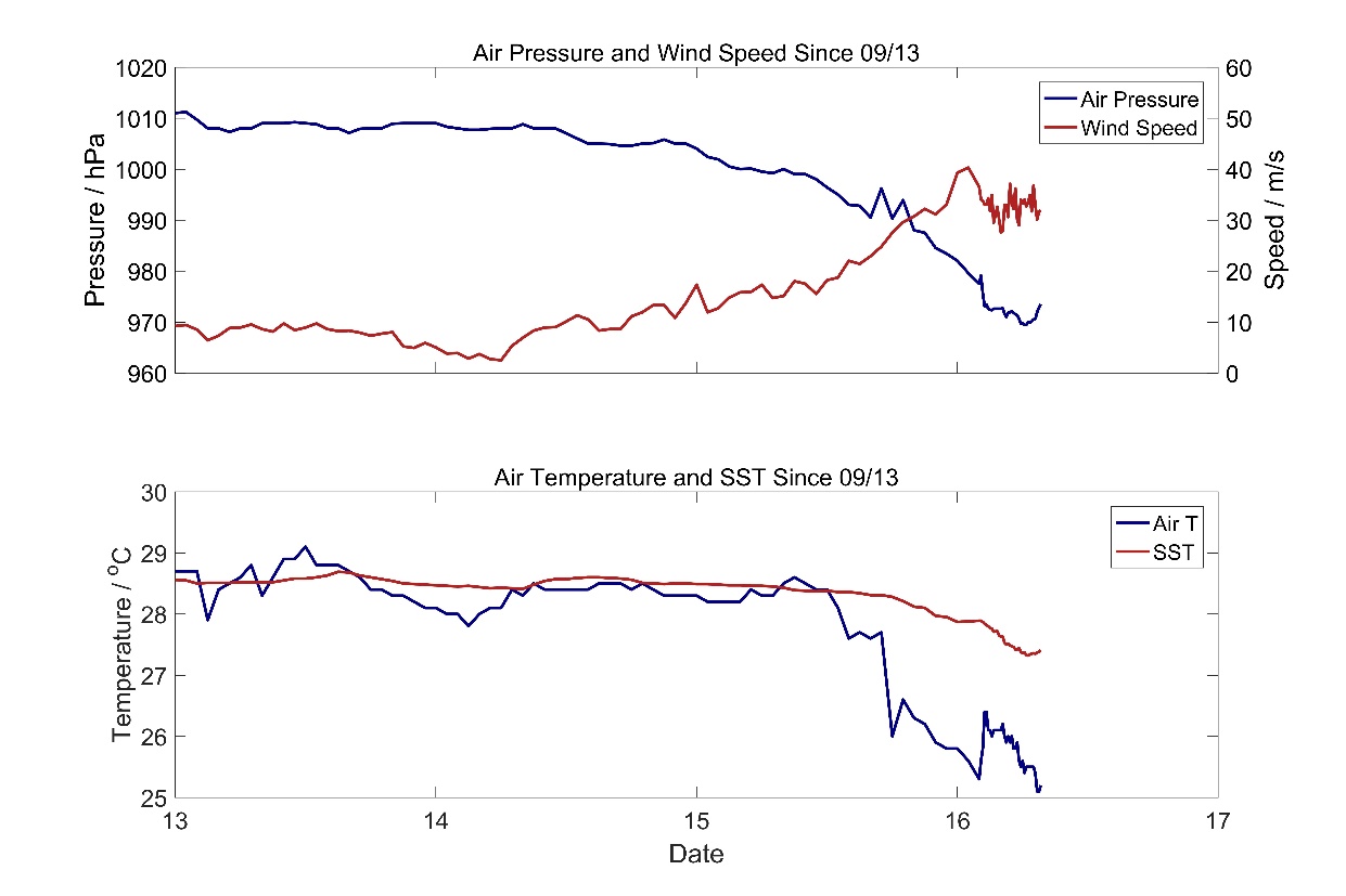 “山竹”期間氣壓、風速、海表面溫度和氣溫呈現(xiàn)同樣的變化趨勢