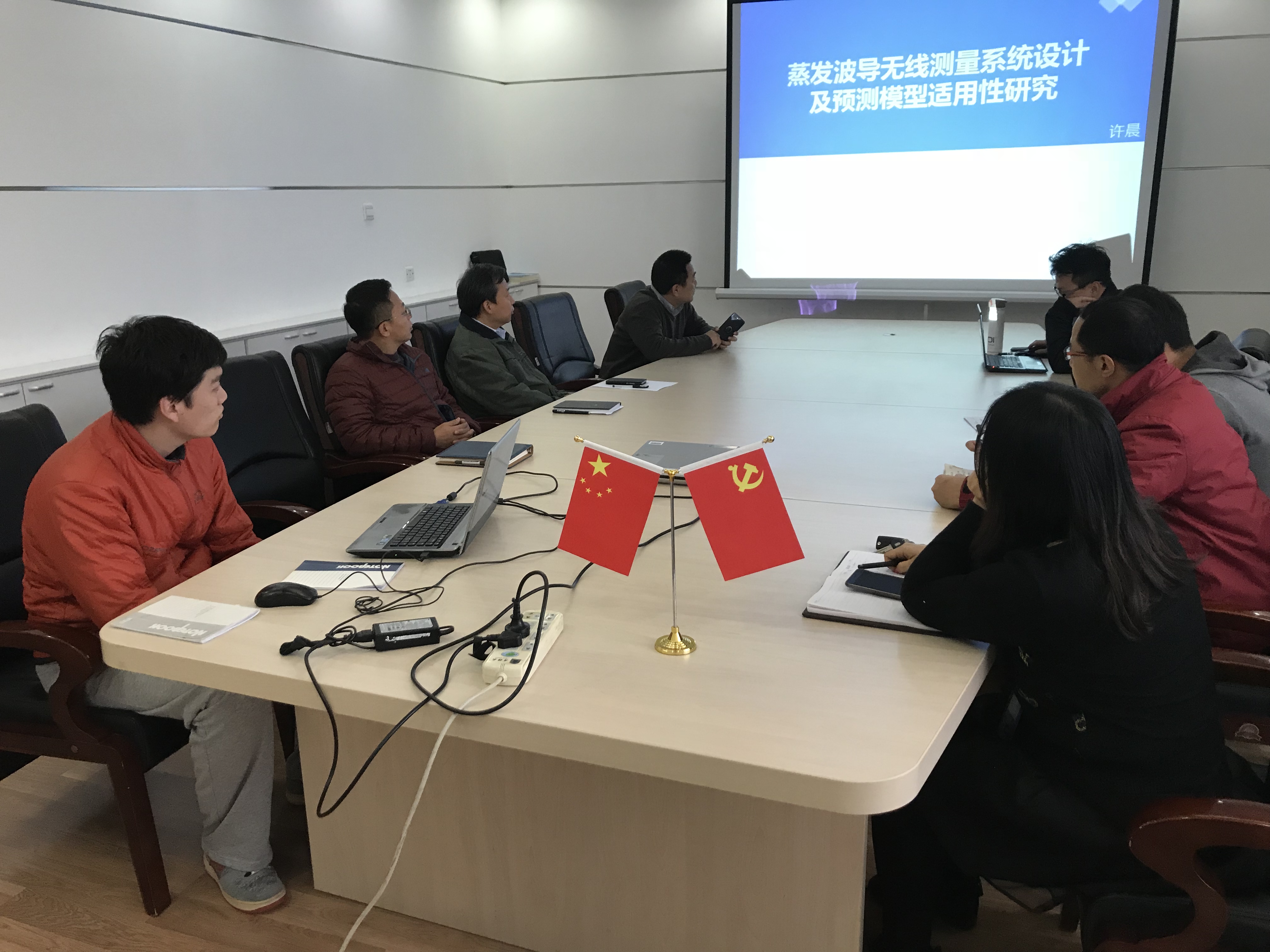 會上,海保室4名在讀研究生分別就“蒸發波導無線測量系統設計及預測模型適用性研究”、“基于波浪滑翔機的海浪方向譜和風壓測量”、“張量理論與連續介質力學”以及“無線電能傳輸技術”等4個方面的內容進行了學術匯報,分享了科研經驗和體會。海保室的同事們結合自身科研方向與研究生一起就相關科學技術的國內外研究現狀、未來發展趨勢、現階段主要研究內容(包括需要重點攻關的關鍵技術和問題解決方案等)以及下一步科研工作安排進行了交流與討論。