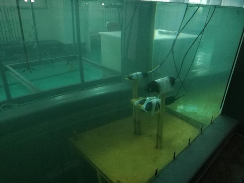 試驗在中心海洋動力環境實驗室的風浪流水槽中進行,利用風浪流水槽的造流功能,采用諾泰克的小威龍流速儀對數據進行比測。試驗水位0.8m,初始流速為0.56m/s,試驗過程中,逐漸增大流速,每個工況持續測量15-30分鐘。試驗用戶獲得寶貴試驗數據的同時,也發現了儀器存在的問題,為今后儀器的改進起到重要的作用。