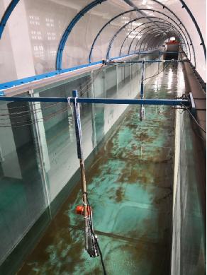 海流計(jì)在風(fēng)浪流水槽的比對(duì)試驗(yàn)現(xiàn)場(chǎng)