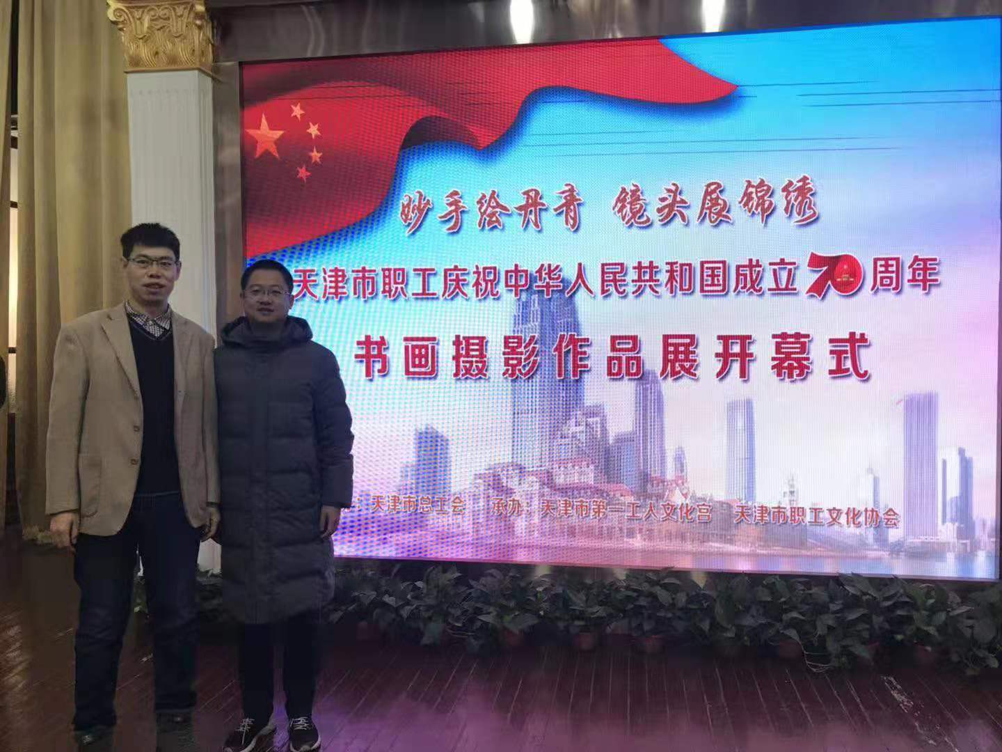 2019年8月天津市啟動了“妙手繪丹青 鏡頭展錦繡”天津市職工慶祝中華人民共和國成立70周年書畫攝影作品征集活動。中心職工姚世強和孔佑迪以謳歌建國70年的光輝歷程為主題,創作了兩幅書法作品參展分別是行楷“偉大復興中國夢”和“精忠報國新征程,建功立業新時代”。其中姚世強創作的“偉大復興中國夢”獲優秀作品表彰。