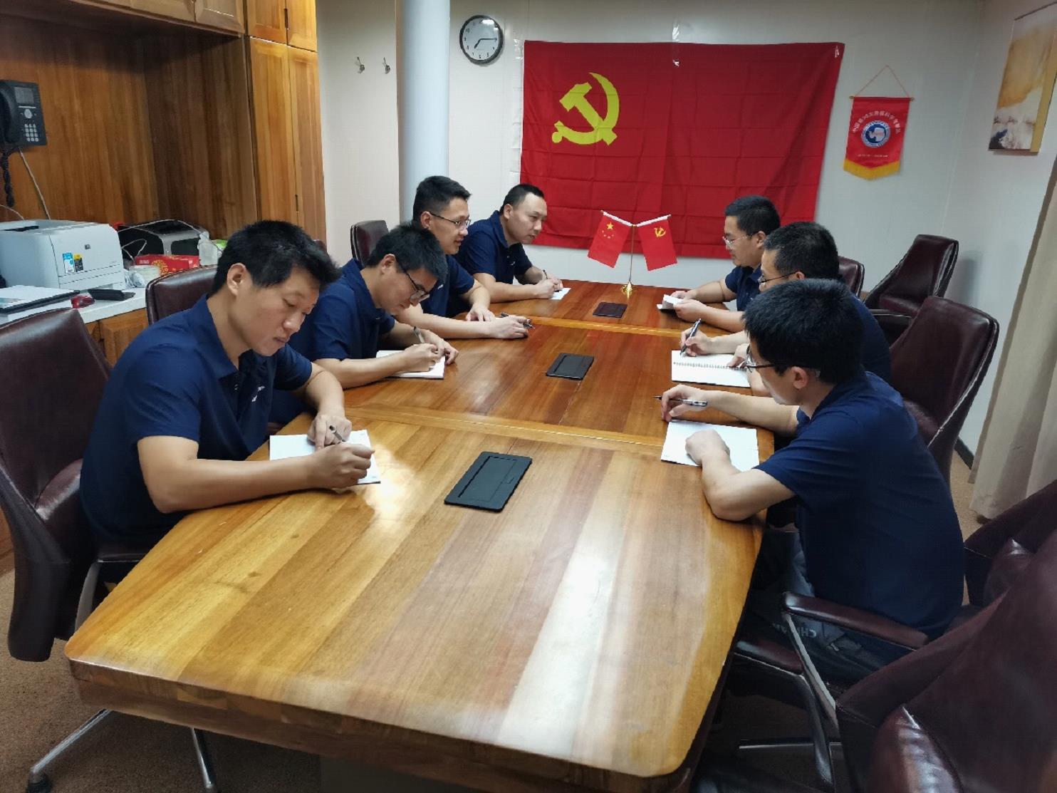 雖然7名隊(duì)員都來自于中心,但分屬不同科室、不同課題組,每個(gè)人的工作方向也不相同,如果在彼此之間了解不深的情況下開展團(tuán)隊(duì)協(xié)作,工作效率或將大打折扣。在開普敦拷機(jī)測(cè)試、第一次西風(fēng)帶布放作業(yè)、長(zhǎng)城站組裝測(cè)試、西風(fēng)帶第二次布放作業(yè)等重大作業(yè)等各個(gè)階段,為了讓大家盡快融合,保證工作有序開展,黨小組多次通過擴(kuò)大會(huì)議的形式,為大家搭建一個(gè)交流平臺(tái),在開展黨建工作的同時(shí),讓大家盡快熟悉彼此的業(yè)務(wù)方向、做事風(fēng)格和生活習(xí)慣,分享自己的工作學(xué)習(xí)、海上作業(yè)和船上生活經(jīng)驗(yàn),為大家“互相學(xué)習(xí)、協(xié)同合作”提供基礎(chǔ),從而更加有效的統(tǒng)一思想,統(tǒng)一步調(diào),站在我國(guó)極地科考事業(yè)的高度去思考問題,從中心具體科考工作的角度去落實(shí)行動(dòng),為科考任務(wù)的順利完成保駕護(hù)航。