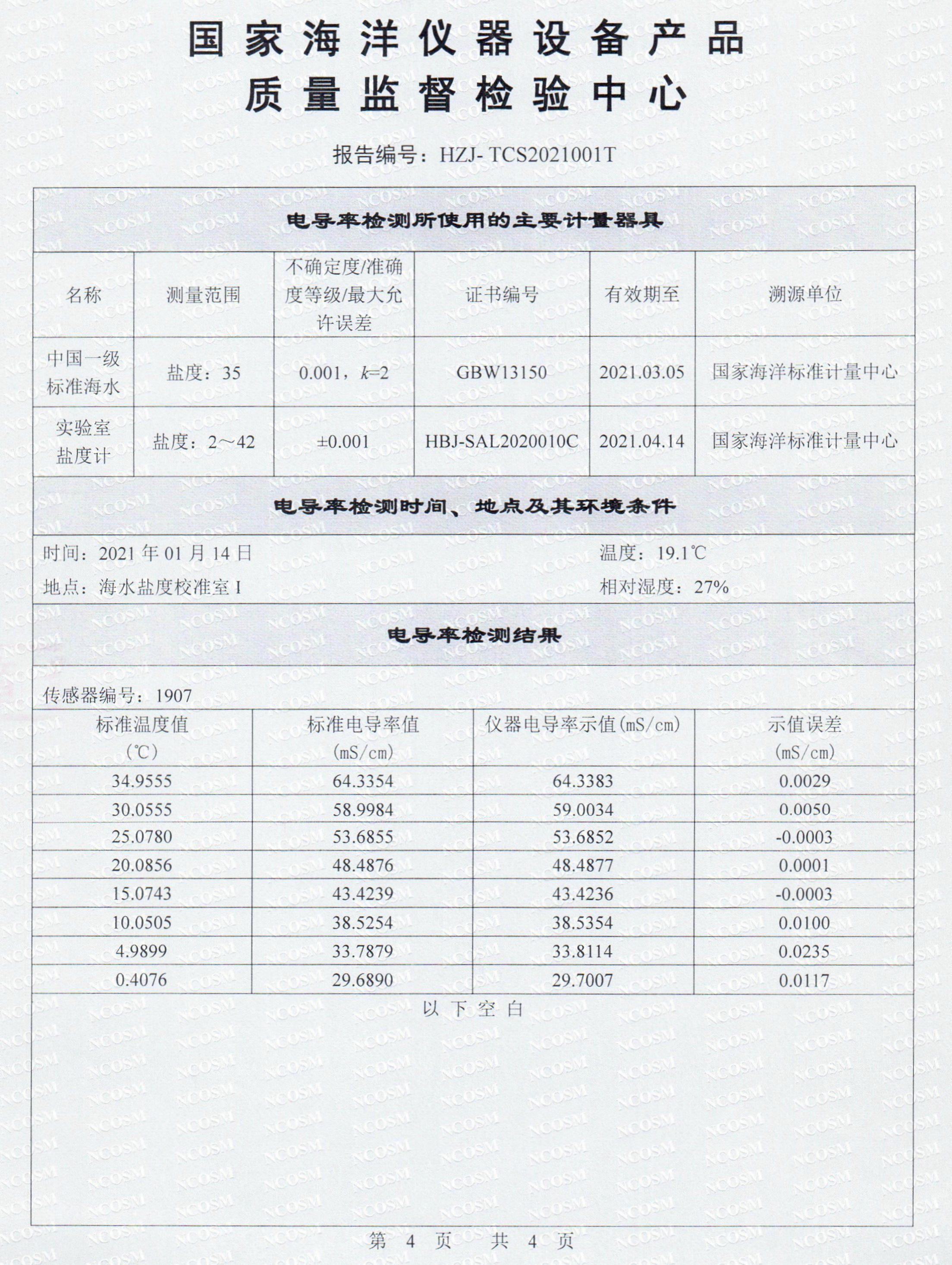 回收后,參試設備OST36M抗污染CTD完成外觀簡單清洗,在國家海洋標準計量中心進行了復測,結果顯示,其電導率最大漂移為0.0235mS/cm,符合課題任務書、海試大綱中關于抗污染能力的考核指標要求。