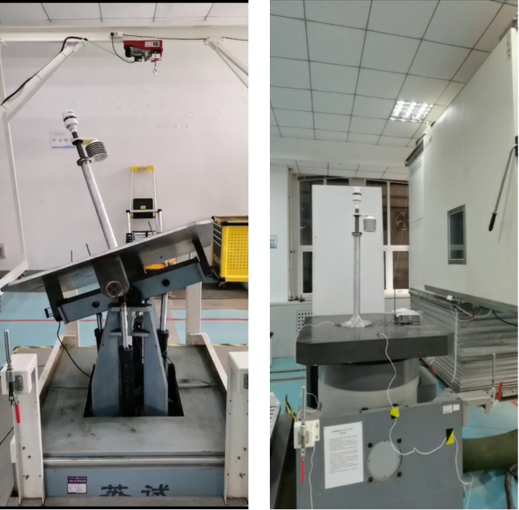 項目主要研究目標是探索在極地氣墊破冰平臺上搭載氣象觀測系統的可行性,在實際搭載前,需要建立試驗方法,最大限度的模擬極地氣墊破冰平臺的實際工作條件,進行嚴苛的試驗考核。為確保氣象觀測系統滿足應用要求,在低溫、平臺布放沖擊、水面傾斜搖擺等惡劣環境下正常工作,從而保證其測量數據的可靠性和穩定性。中心質檢室、海保室聯合開展研究,依據項目實船搭載性能測試實施方案和氣墊破冰平臺船用要求等,設計了環境試驗方案,依托中心環境檢測與可靠性實驗室,開展超低溫、傾斜搖擺、振動沖擊系列試驗,全部試驗參數的選取均依據被測系統實際工作環境條件,特別開展了艏向、橫向、縱向3個方向綜合的大角度、小周期搖擺試驗,有效模擬了惡劣海況下被測系統的實際工作狀態。