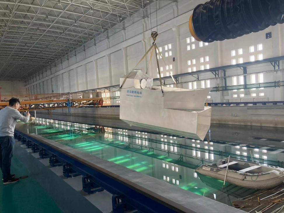 2021年11月8日至19日,中心海洋動力環境實驗室針對中科院廣州能源所研制的喇叭型后彎管波浪能供電船模型開展了試驗工作,該裝置由國家自然科學基金項目資助研發。試驗工作為期兩周并順利完成,試驗結果達到了研發單位的預期目標,并獲得了高度認可。