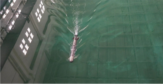 試驗工作在動力環(huán)境實驗室風浪多功能水池進行,本次試驗主要測試了AUV水面與水下的航行姿態(tài)、按規(guī)定軌跡航行的情況。試驗工作的順利完成,不僅為北京大學進一步開展跨介質(zhì)AUV的研制提供了依據(jù),也展現(xiàn)了中心對海洋監(jiān)測儀器設備科技創(chuàng)新與成果轉化的支撐服務能力。(試驗場中心 王花梅)