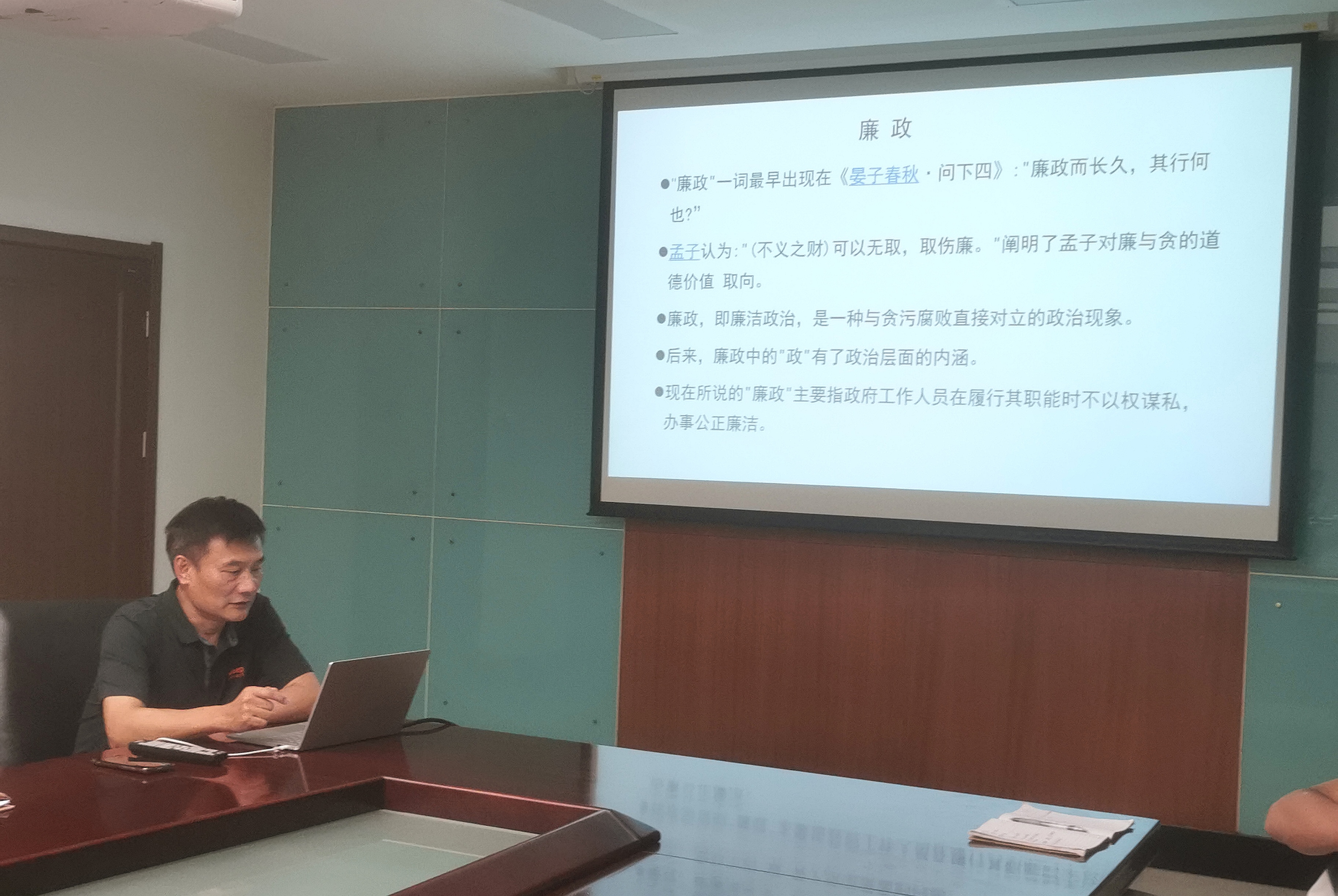 王項(xiàng)南同志介紹了“廉政”的歷史起源,以及新中國多位領(lǐng)導(dǎo)人關(guān)于反腐倡廉的重要思想和論述,帶領(lǐng)與會人員再次深入學(xué)習(xí)了中共中央政治局關(guān)于2022年黨風(fēng)廉政和反腐敗工作的部署、十九屆中央紀(jì)委六次全會精神等,重點(diǎn)解讀了自然資源部和中心2022年黨風(fēng)廉政工作要點(diǎn)。王項(xiàng)南同志強(qiáng)調(diào),形式主義、官僚主義、享樂主義、奢靡之風(fēng)、違反“八項(xiàng)規(guī)定”等典型案例具有極強(qiáng)的警示意義,“勿以惡小而為之”。最后,王項(xiàng)南同志結(jié)合學(xué)習(xí)體會,提出了“勤學(xué)習(xí),講政治,提高認(rèn)識”、“遵紀(jì)守法,以身作則”、“嚴(yán)于律己,筑牢防線”、“履職盡責(zé),自覺接受監(jiān)督”以及“求真務(wù)實(shí),扎實(shí)工作”,與支部黨員職工共勉。