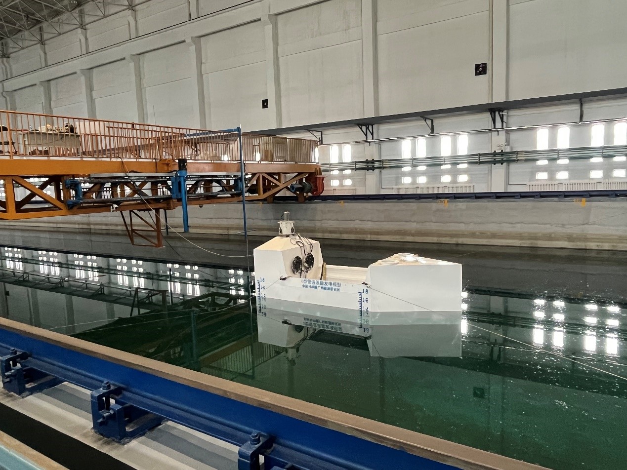 2022年6月7日至7月4日,試驗場中心受中科院廣州能源所委托,為國家自然科學基金支持的“U型管波浪能發電模型”的室內試驗提供了試驗設計、模型布放、傳感器布局、現場測試和數據處理等技術服務,順利完成全部試驗測試內容。