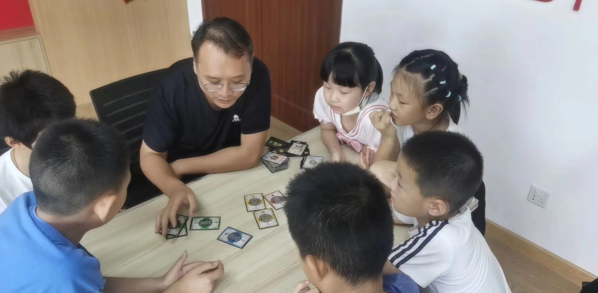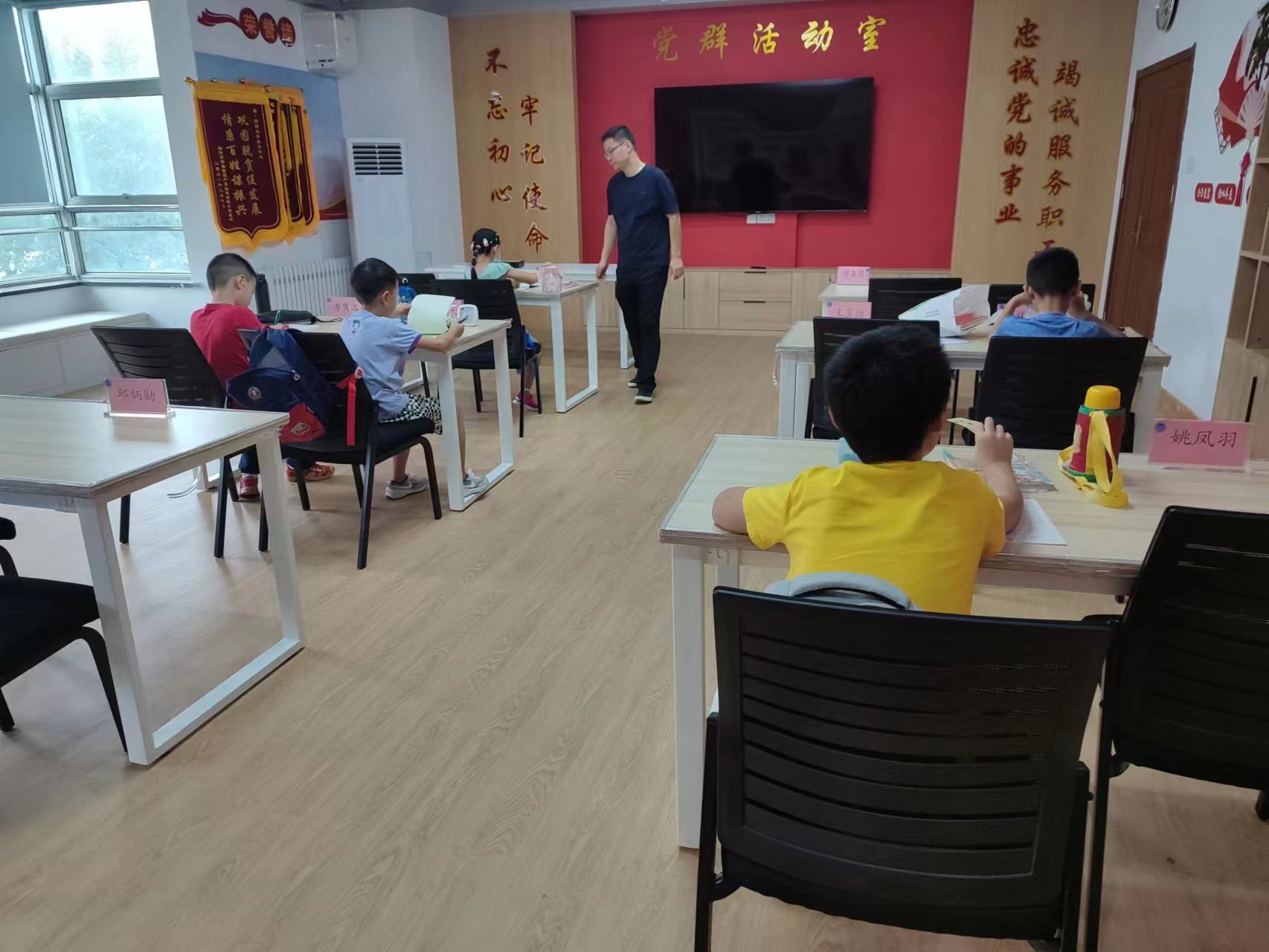 根據職工子女年齡特點,托管班做了上午寫作業、下午實踐與視頻教學、課間做眼睛保健操和廣播體操的課程安排。輪班看護的職工也各盡所能,為學生講授中國歷史和世界地理、輔導硬筆書法、模擬無人機操控、開展室內游戲(如猜燈謎、中國象棋、國際象棋、三國殺等)和戶外活動(如籃球、踢毽子、擲沙包等)。此外,托管班還舉辦了“暑期課堂——海洋能科普活動”,為中心職工子女提供了獨具特色的假期教育資源。