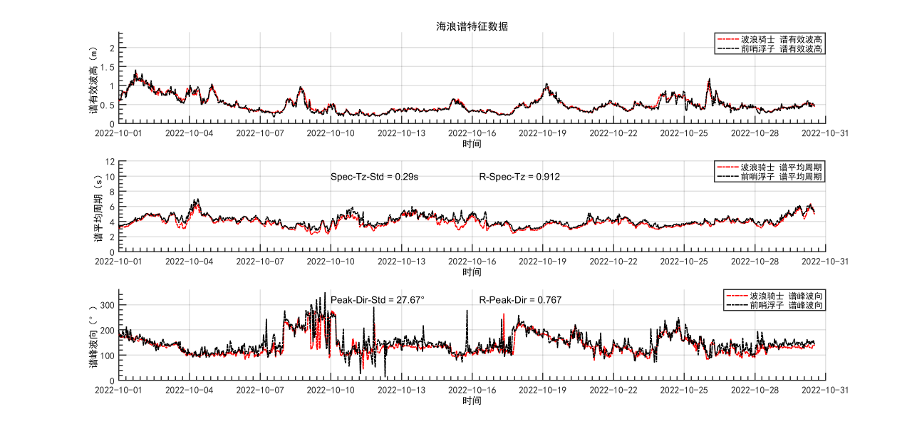 業(yè)務工作2022年9月28日~11月3日,中心研制的“前哨”海浪譜浮子在青島黃海海域順利完成與DWR-MARKIII型波浪騎士的海上比測,全面驗證了嵌入式海浪譜算法、基于北斗短報文通信的海浪譜數(shù)據(jù)實時傳輸?shù)裙δ苄阅堋=?jīng)數(shù)據(jù)分析,“前哨”海浪譜浮子觀測的海浪特征值、能量譜、方向譜均與“波浪騎士”處于同一水平,實現(xiàn)國產(chǎn)海浪譜觀測新的突破,為將來設備自主可控奠定良好的技術(shù)基礎(chǔ)。