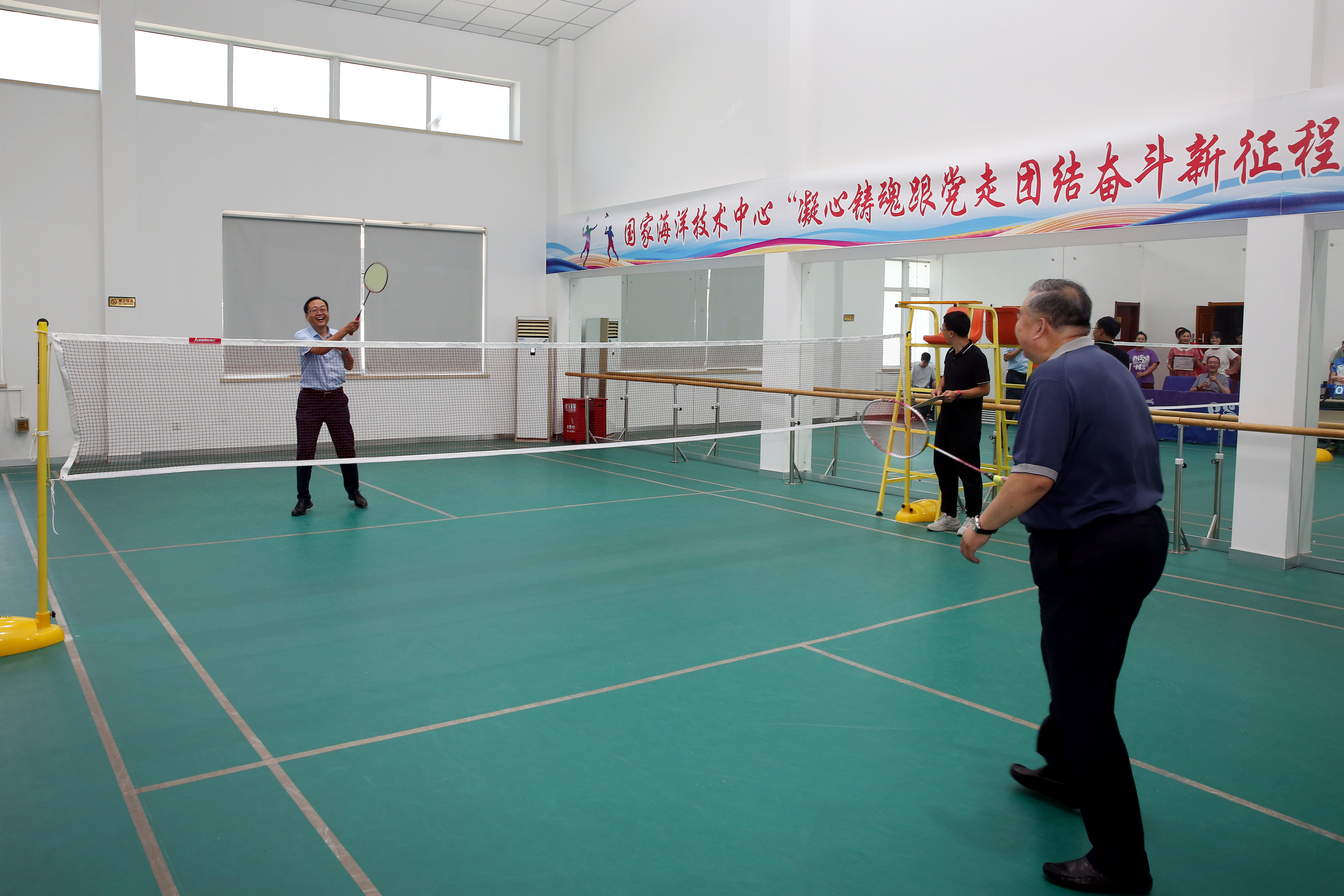 6月16日,國家海洋技術中心“凝心鑄魂跟黨走 團結奮斗新征程”羽毛球團體賽頒獎儀式在國家海洋標準計量中心球館舉行。中心副主任隋軍、紀委書記王世福到場為獲獎參賽隊頒獎,并為隨后開始的表演賽開球。表演賽由中心羽毛球隊拆分為紅藍兩隊,模擬蘇迪曼杯賽制展開對抗,比賽精彩紛呈、扣人心弦,展示了羽毛球隊的訓練成果,也為為期一周的團體賽畫上了圓滿的句號。
