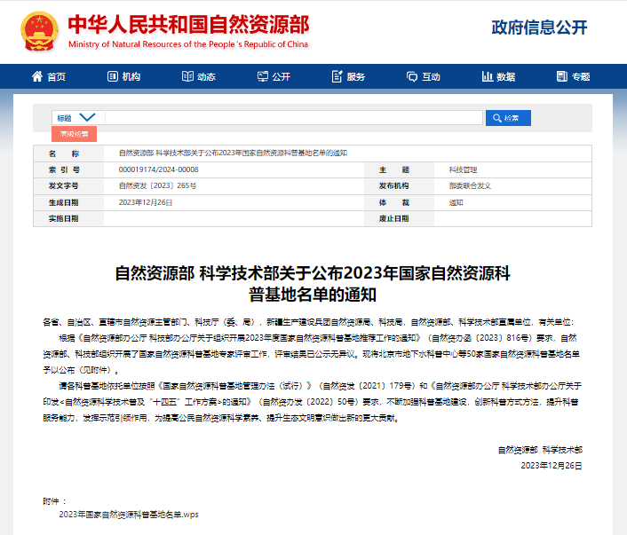 國家自然資源科普基地是由自然資源部和科技部共同審定的科普基地,是踐行習(xí)近平生態(tài)文明思想,展示自然資源科技成果,普及地球科學(xué)知識(shí),傳播生態(tài)文明理念,提高全民自然資源科學(xué)文化素質(zhì)的重要場所,是國家特色科普基地的重要組成。