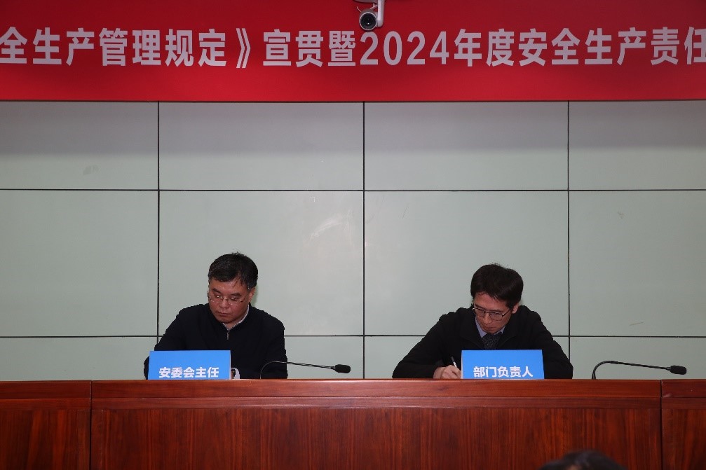 彭偉主任強調,中心安委會同各部門主要負責人現場簽訂安全生產責任書,這不僅是一種儀式,更是一場安全意識教育,是各部門和中心全體領導干部對嚴格安全生產管理的莊重承諾和相互見證。今年,中心圍繞安全生產責任制的落實,將在安全生產管理工作的研究部署、安全生產有關事項審核監管、安全生產檢查整改、安全生產培訓教育、安全生產管理檔案等方面,持續加強常態化、精細化管理,不斷提升安全管理水平。