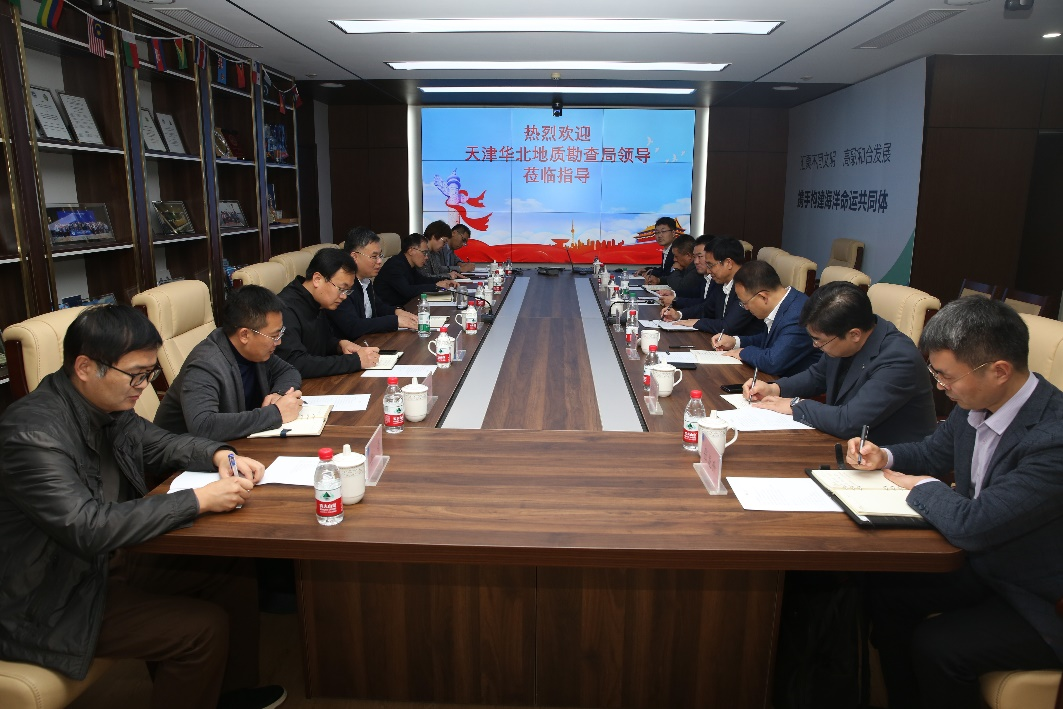 彭偉主任向唐海軍局長一行來訪表示熱烈歡迎,介紹了中心主要職責、主要業務支撐工作、海洋科技創新成果和科研基礎設施等基本情況。彭偉主任表示雙方在技術基礎和人才隊伍等方面各具優勢且具有很強的互補性,要進一步暢通合作渠道,拓展合作機會,提升合作層次,更好地服務海洋與地勘事業高質量發展。唐海軍局長表示,雙方有合作基礎,也有更廣闊的合作空間,希望依托技術中心在海洋業務與海洋科技創新等方面優勢,依托華勘局在綜合地質技術、海內外市場布局等方面優勢,在多領域、多層面共同謀劃項目,不斷提升合作的廣度、深度和高度。