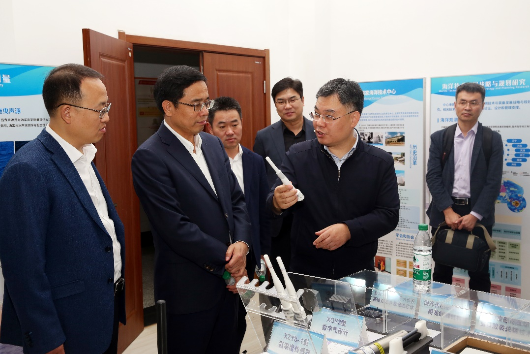 來訪期間,唐海軍局長一行參觀考察了中心科技成果展室、海洋觀測動力環境實驗室。天津華北地質勘查局、華勘集團有限公司等有關部門人員隨同來訪。我中心辦公室、業務處、海洋能發展中心、海洋裝備院、海洋資源保護利用研究院等部門負責人參加了座談交流。
